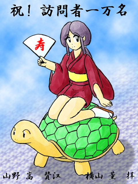 「studioISHIZUE」の横山薫 さんより10000HIT突破記念のお祝いCGを頂きました ! どうも有り難う (^.^)> お題は1万にちなんで亀さんと仙女様だそうです かわいらしいですね )^o^( これからもよろしくお願いします _(._.)_