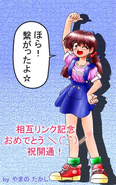 「OSA-P」さんのホームページとのリンクの記念CGです。 背景や文字以外はペン入れから彩色まですべて「ペインターver.5」です。 面白いんだけどまだ慣れていないのでちょっと大変です。
