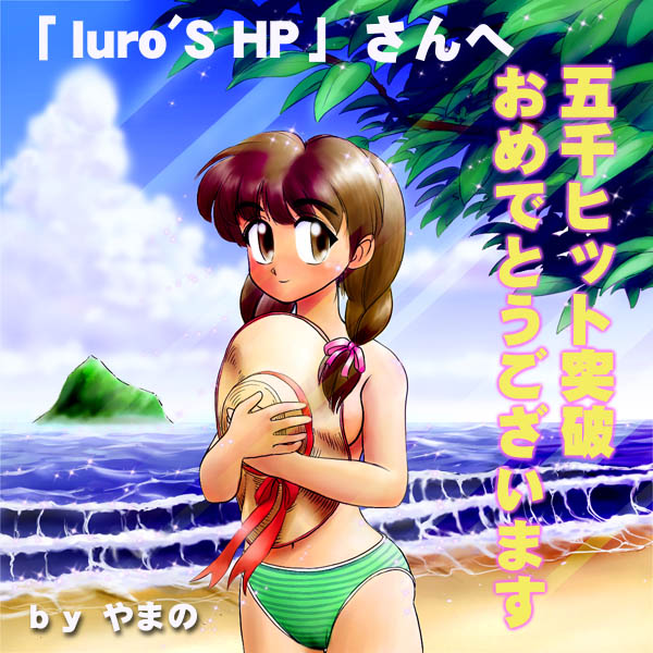 「ゆーろ君のHP」が5000HIT突破したので送らせて頂きました _(._.)_ 夏らしく水着です・・・ ちとお尻が大きかったかの〜?三つ編みもこの長さでは意味無しか (T_T)。 残念ながらJavaには対応しておりません (^_^;)>