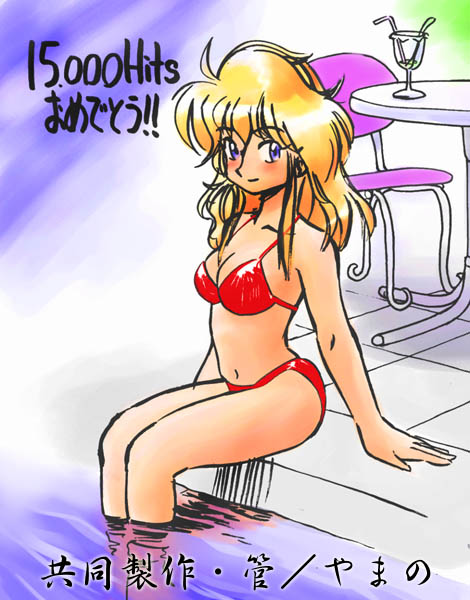 「スパフー・モスレシン」さんの来るべき15000ヒットの記念に送りました _(._.)_ 共同製作の贈り物・・・ちょっとまて! なんで送られる人まで手伝ってるの!? (^_^;) 因みに「管」とは「仮名:綾波楽描き大王」の管理人さんです。 下書き:私 キャラクターペン入れ:管 ?:送られた本人 背景:私 彩色:私