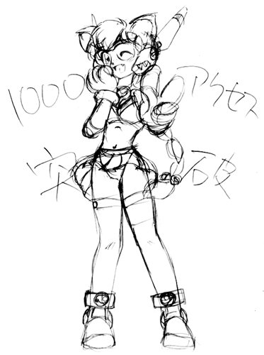 「ニャ〜ん、やったニャ〜 (^。^)v 1000あくせす〜 (>_<)g・・・ と思ってたにゃ1500突破してるニャ〜 \(@_@)/ びっくりしたニャ〜 (・_・)>」 というコメントを「まちるだ」嬢から頂きましたニャ・・・ あ、うつったニャ (゚-゚) コンセプトは「猫耳、猫グローブ、眼鏡、三つ編み、たれ目、耳センサー、パンチラ、Vサイン」・・・ もうめちゃくちゃ (^_^;) リクエスト次第でカラーイラストになりますよ、お便り待ってます _(._.)_。