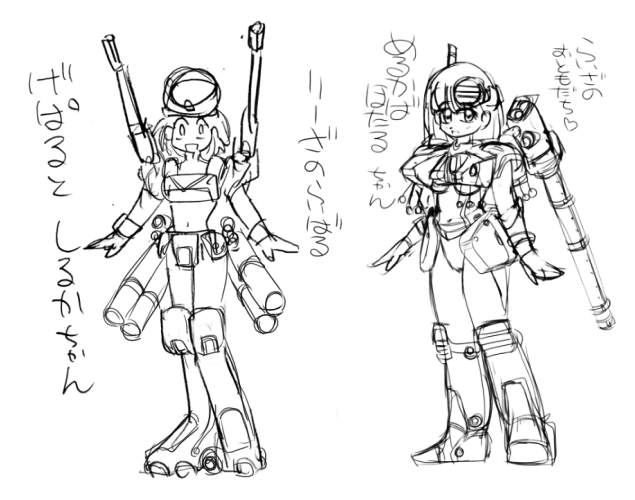 「りーざちゃん」のお友達とライバルです。右の「めるかばほたるちゃん」はらいざのおともだちと書いてあるけど間違い (T_T)。 「ほたるちゃん」は足がちょっと太目なのを気にしているけど「りーざちゃん」は頭だけで生活してますから贅沢ですね (^_^;)。 「げぱるとしるかちゃん」はいつも目がてんで何を考えているか判りません (^_^;)。彼女が起動すると動くものすべて穴だらけに・・・ 恐い (T_T)。